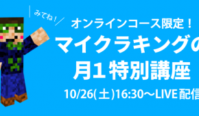10月12日(土)16:30〜からライブ配信を予定しおりました、マイクラキングによる月1特別講座は、台風19号の影響により配信環境に不具合等が生じる可能性を考慮し、本日の配信を中止し、10月26日(土)へ延期させていただ…